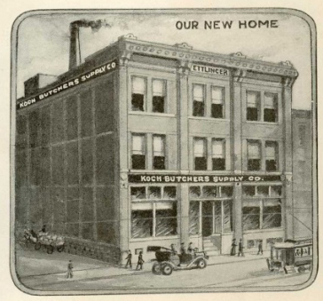 1916 – Koch supera su ubicación original y se muda a un nuevo edificio de cinco pisos que incluye una sala de ventas minoristas y instalaciones de fabricación para enfriadores y mostradores de carnicero con encimeras de mármol.